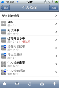 - 个人修炼目标:设置为Single Action类型,把年度想要阅读的书、提高英语水平等的目标放在这里。用这种办法可以随时提醒自己在这个职责范围内的全年目标是什么,每周回顾时都感觉正在朝着这个方向前进。